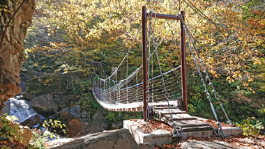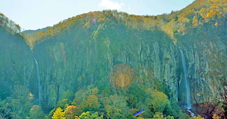 主な滝の落差は、不動滝が89m、権現滝が82mで、国の名勝に指定された「米子瀑布群」を構成している。