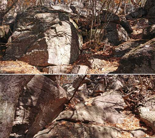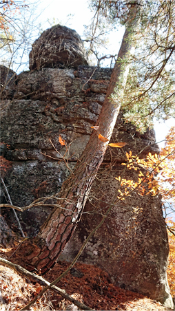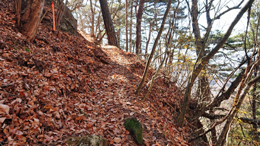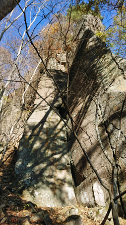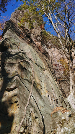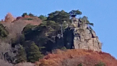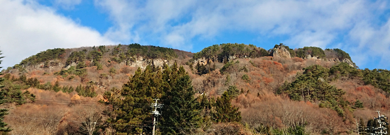 閼伽流山は、南側の街道から眺めると、断崖絶壁上の山であることが分かります。
