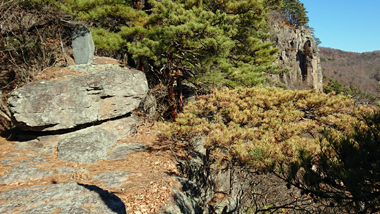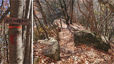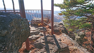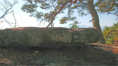 閼伽流山頂に眺望はありませんが、南西に進み巨岩を越えると、断崖上の展望台(昭和天皇が摂政の時に登った仙人ヶ岳)に出ます。そこからは眼下に佐久平を遠く八ヶ岳などを一望することができます。