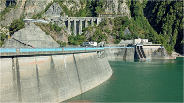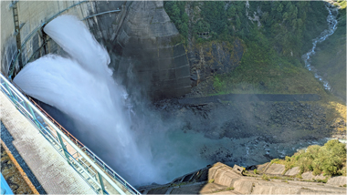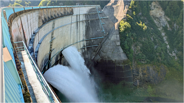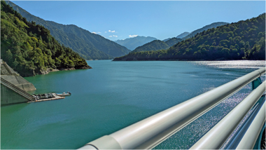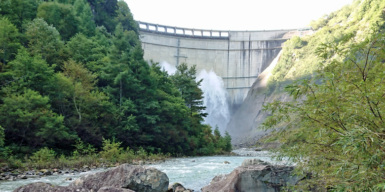 黒部ダムは、北アルプスの黒部峡谷を流れる黒部川に造られたアーチ式のダム(幅492m、高さ186m)である。