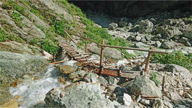 どちらも黒部川沿いの断崖絶壁を「コ」の字形にくり抜いた幅の狭い道などを通る危険なルート。抜け道がないので二つをセットで歩くことになる(令和7年9月現在、工事中で出合から通行止め)。