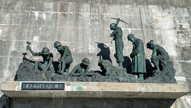 戦後の電力不足解消のため関西電力が、1956年(昭和31年)に着工した黒部ダム(通称くろよん)。資材輸送のトンネルの難工事(出水など軟弱な地層「破砕帯」)を経て、1963年(昭和38年)に完成した(殉職者171人を数えた)。